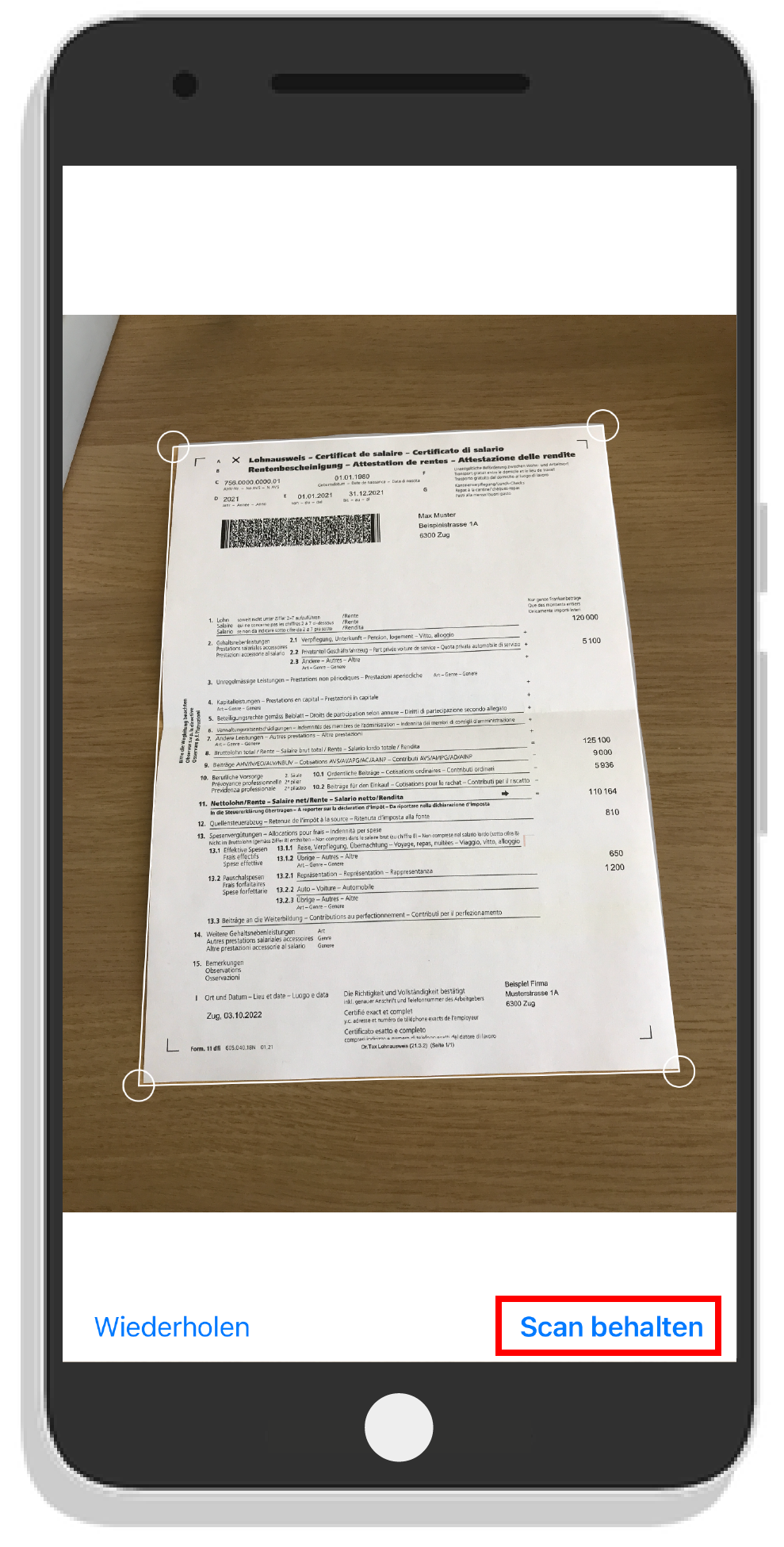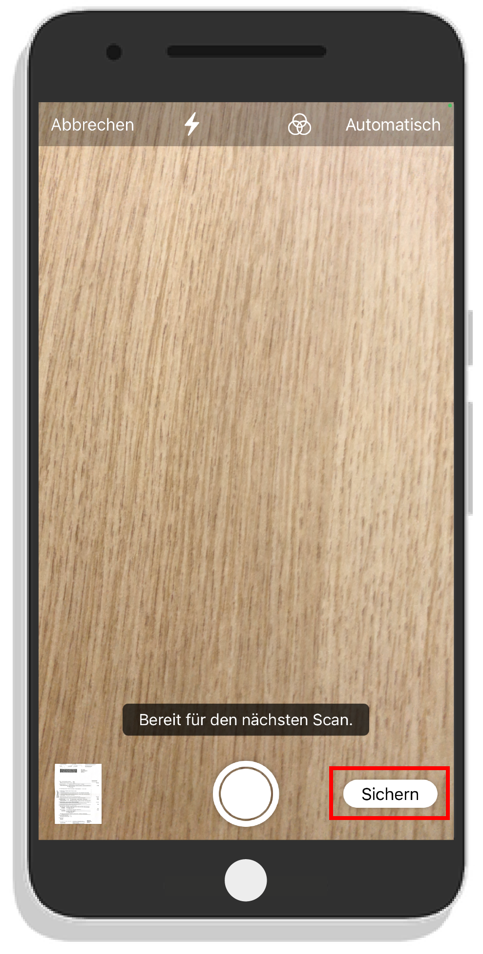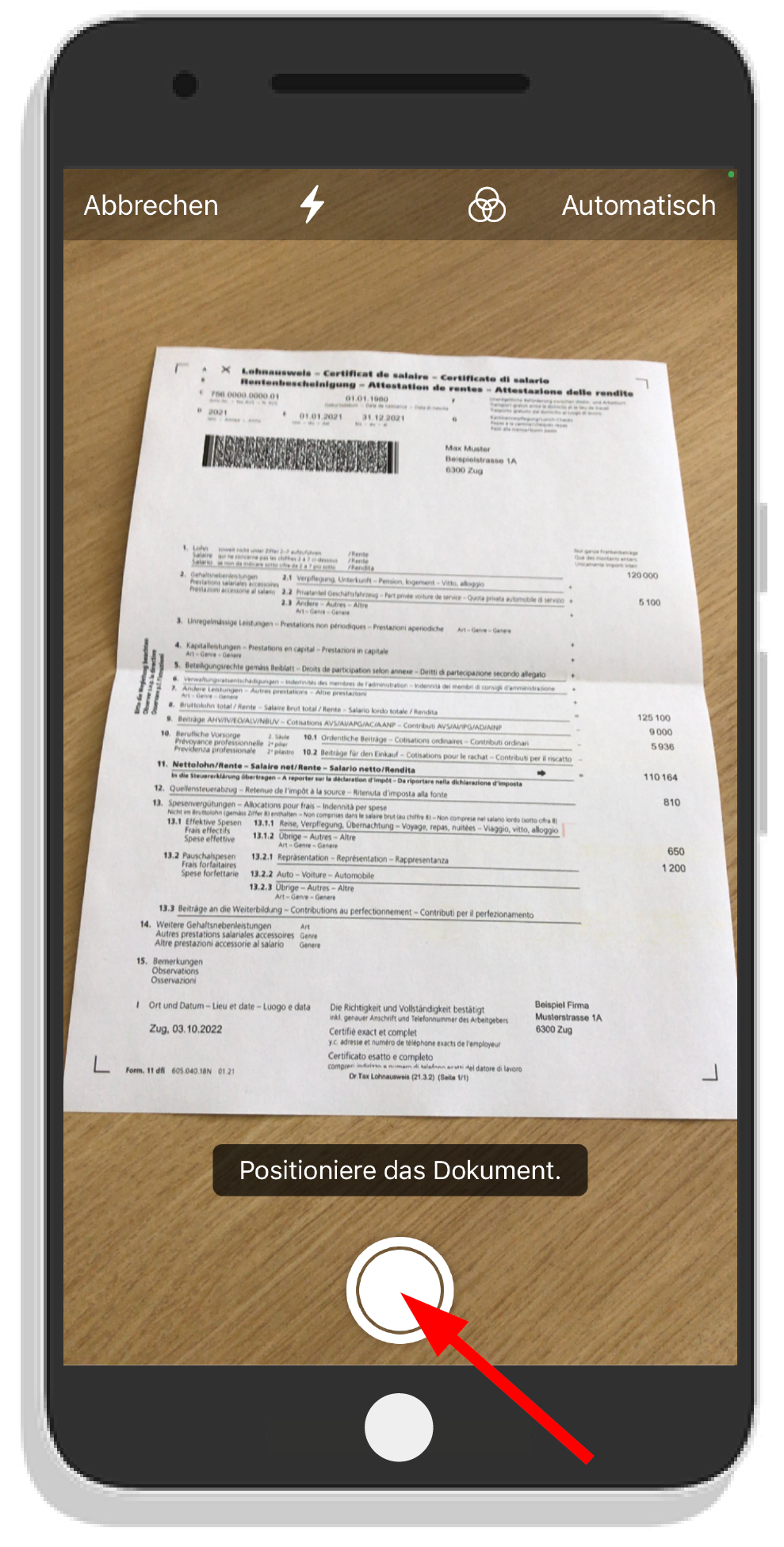 - Klicken Sie auf Dokument fotografieren.