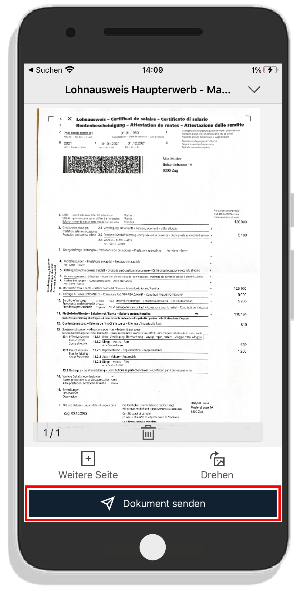 - Klicken Sie auf Dokument senden.