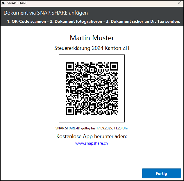 Dr. Tax bietet die Möglichkeit, Belege elektronisch den Steuererklärungen hinzuzufügen. Belege können eingescannt via Drag and Drop oder per Hotfolder den Steuerklärungen angehängt werden. Eine dritte Möglichkeit ist das Hinzufügen ohne scannen mittels Snap.Share. Der Ablauf wird Ihnen in folgender Anleitung erklärt.