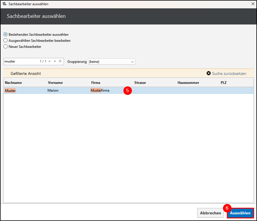 - Wählen Sie den entsprechenden Sachbearbeiter aus.