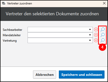Sie können Ihre Vertreter den einzelnen Mandanten und Dokumenten einzeln oder im Rahmen einer Massenmutation zuweisen. Führen Sie dazu folgende Schritte aus: